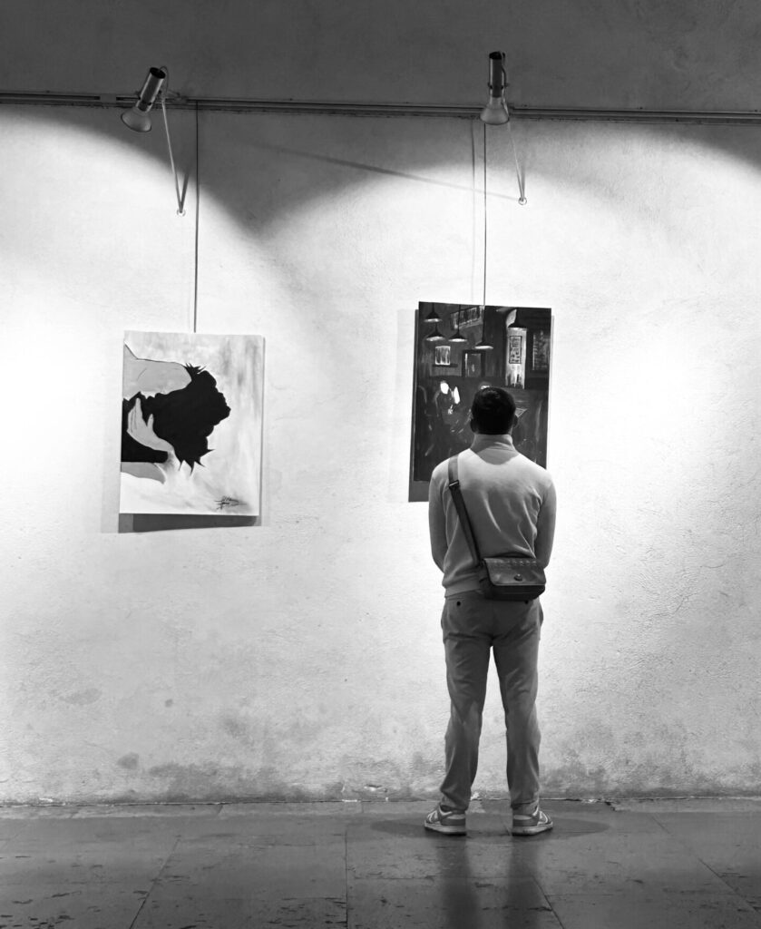 À travers une esthétique en noir, blanc et gris, elle invite le public à traverser des espaces visuels et sonores où se mêlent forces, fragilités, sensations et poésie.